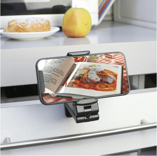 Universell, bærbar reiseholder med klemme for mobiltelefoner, svart