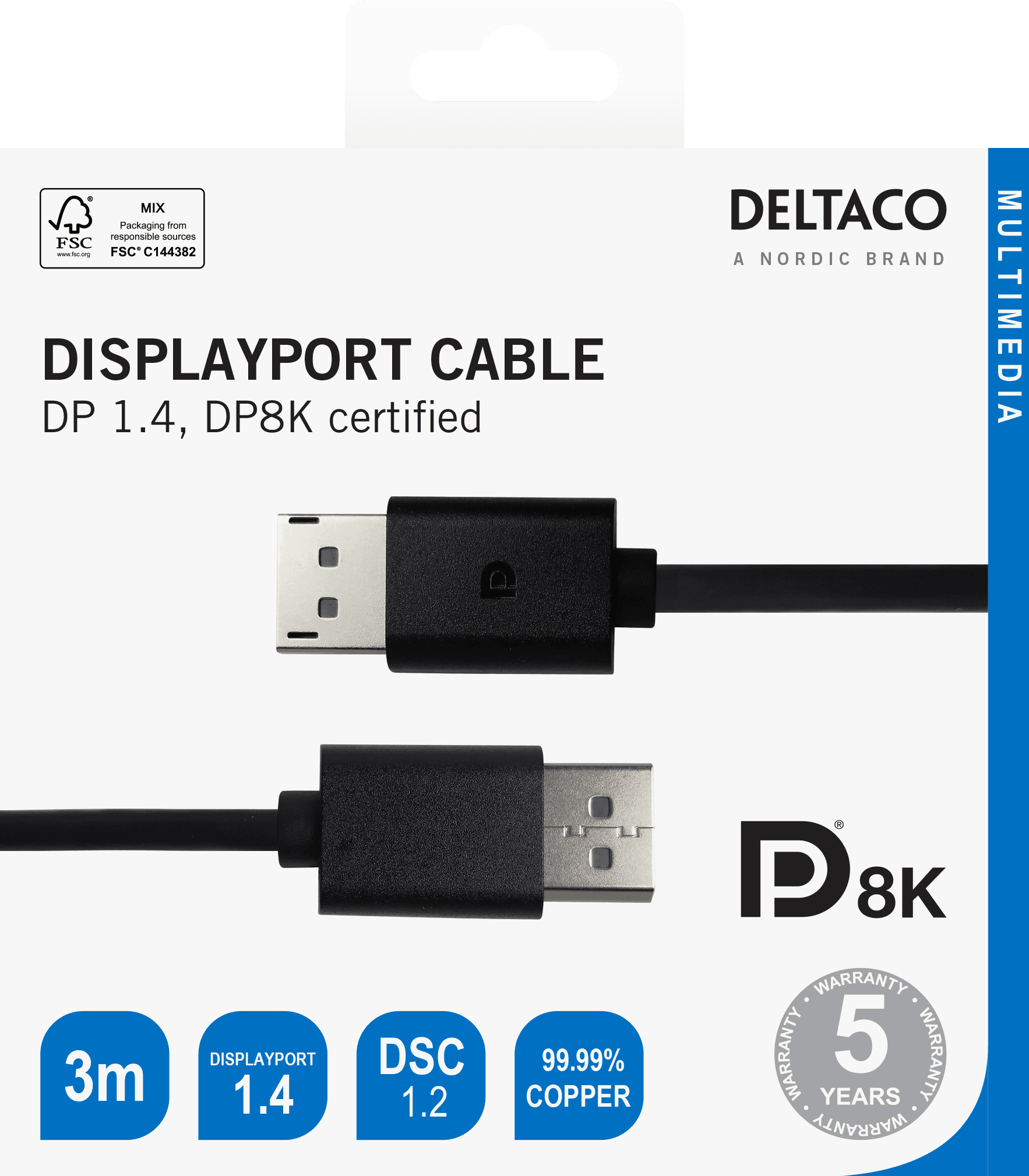 DisplayPort 1.4-kabel, DP8K-sertifisert, 3 m, svart