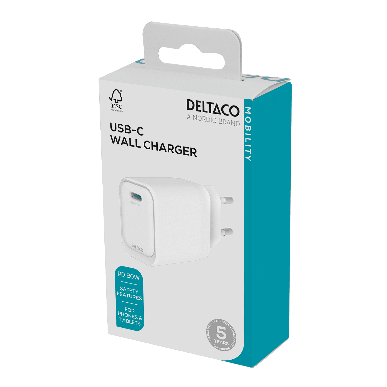 USB-C wall charger, 1x USB-C PD, 20 W, white
