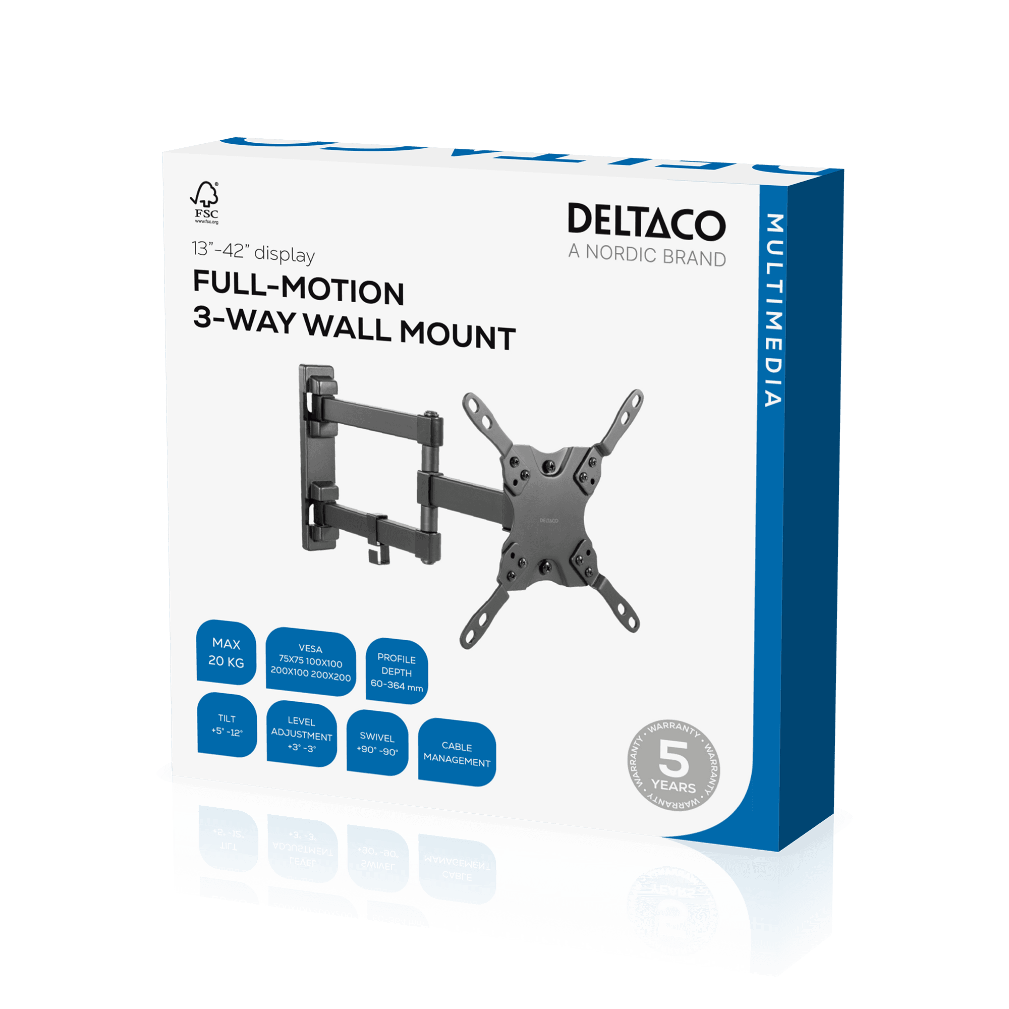 Fleksibel veggfeste for TV/skjermer opptil 20 kg. Den har en arm med 3 ledd som gjør det enkelt å justere til en posisjon etter dine ønsker. På armen er det en krok for organisering av kablene dine